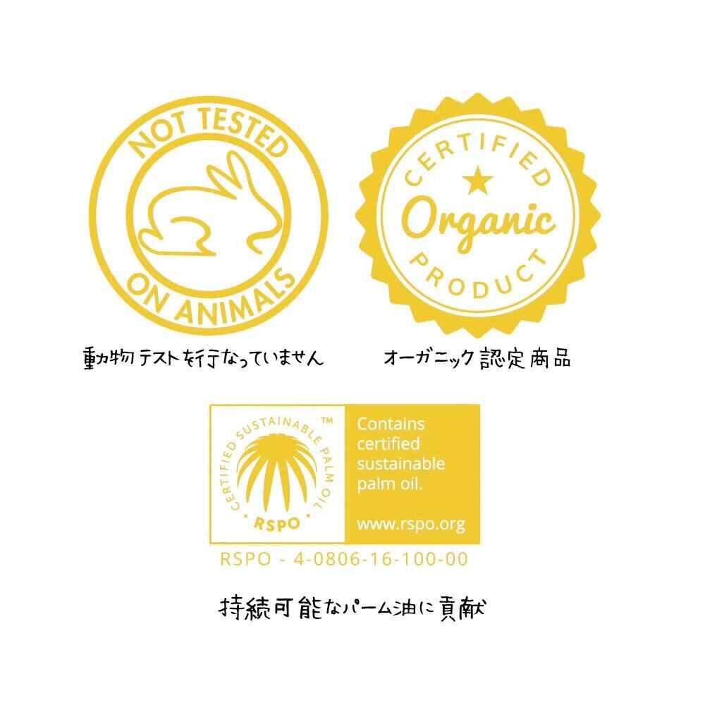 エッセンシャルオイル高配合によりバスタイムが香りで包まれ、オーガニック特有の"香りが物足りない"を払拭させました。※合成香料ゼロ→香りの元となるのは全て"精油"です。